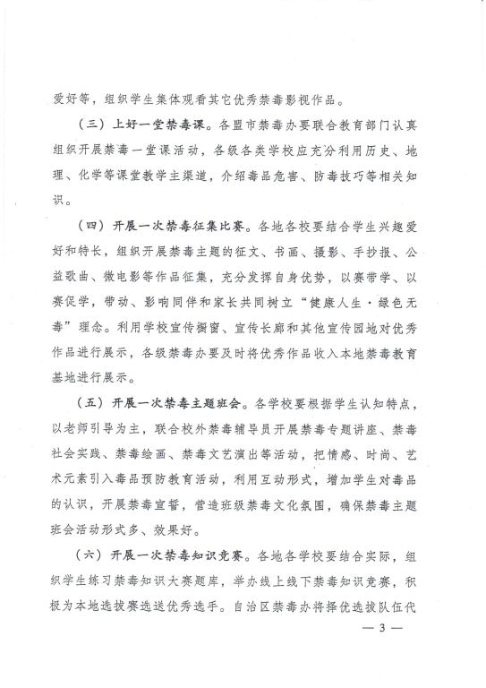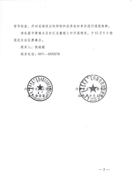 根據內蒙古自治區禁毒委員會辦公室、內蒙古自治區教育廳聯合下發的《關于開展全區2018年學校毒品預防教育“六個一”活動的通知》要求(以下簡稱《通知》),在全校開展毒品預防教育“六個一”活動。現將有關事宜通知如下。
