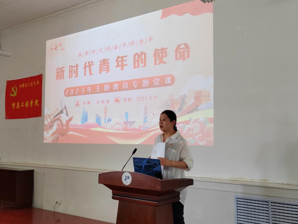 黨委書記烏迪圍繞“追憶開國歷程 做新時代好青年”這一課題進行詳細講解;院長黃平平結合信息類專業發展闡述了“弘揚‘兩彈一星’精神”的重要意義;黨委副書記、副院長佟姝婕以“新時代青年的使命”為題引導大家展開討論、學習;副研究員王彩玲組織大家認真學習“鑄牢中華民族共同體意識”;學院黨委委員許霞對端正大學生入黨動機和大學生入黨流程做了深入介紹;校外輔導員翟鶴重點給大家講解了如何發揮大學生黨員的先鋒模范作用。