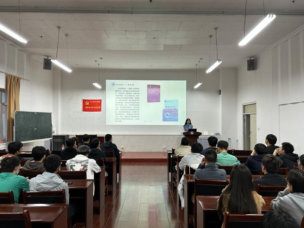 5月24日,通信專業黨支部在電力大樓十樓會議室開展了學習貫徹習近平新時代中國特色社會主義思想主題教育“黨員先鋒崗主題黨日活動”---優秀黨員話經驗·分享交流共成長。本次交流會邀請到了通信19-2于廣洲、王妍;通信19-1班趙海彤、袁一博、李麗五位優秀畢業生黨員,來自各支部的80余名大一大二同學積極參加。本次會議由通信專業學生黨支部組織委員王云燕主持,交流會分為黨員分享和交流問答兩個環節。