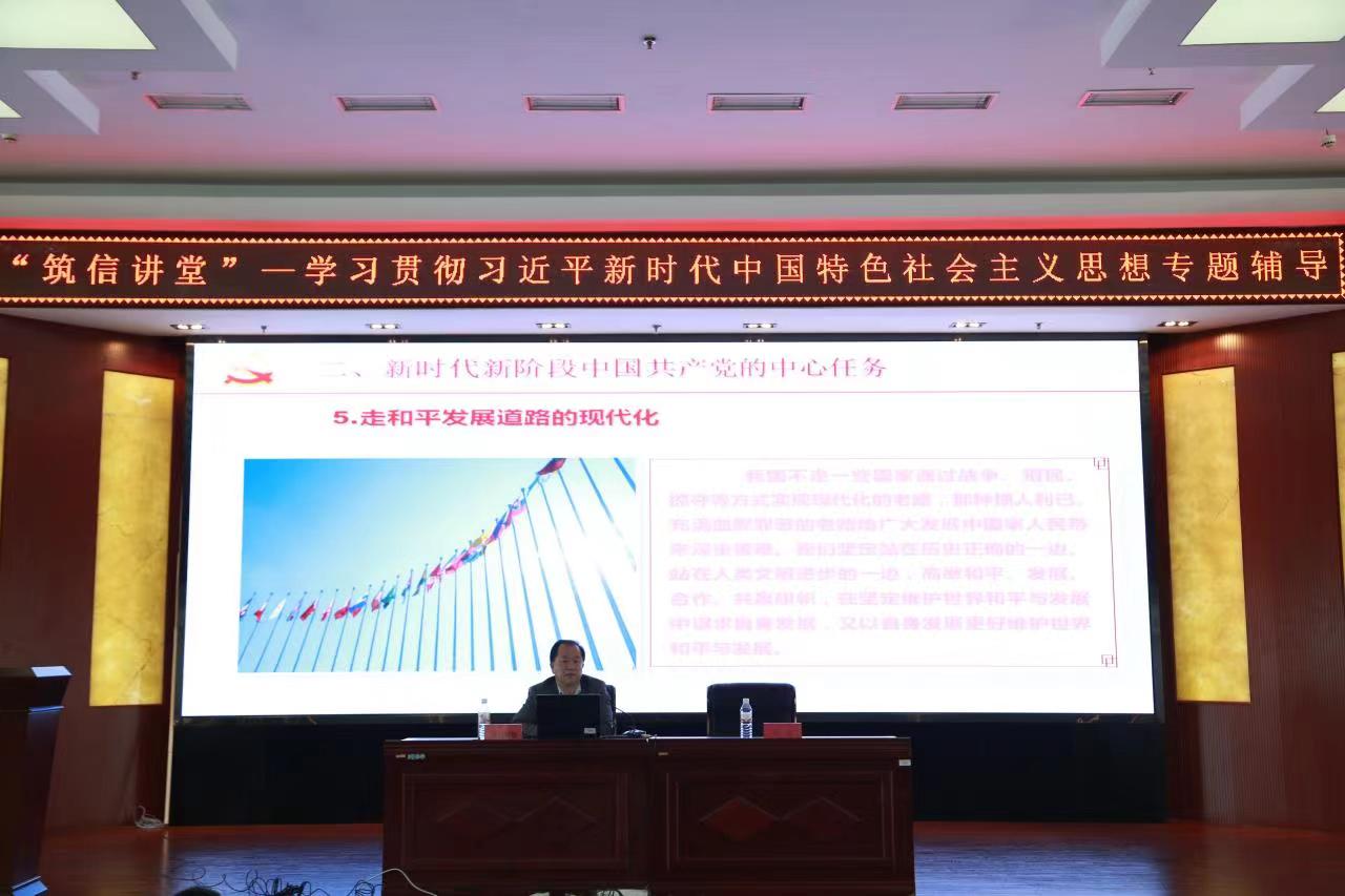 會上,布和朝魯教授圍繞新時代新階段中國共產(chǎn)黨的中心任務(wù),深刻解讀了中國式現(xiàn)代化的重大意義和科學(xué)內(nèi)涵,詳細(xì)闡述了中國式現(xiàn)代化的五大特征和戰(zhàn)略安排,并就中國共產(chǎn)黨如何推動完成新時代中心任務(wù)提出見解和思考。專題輔導(dǎo)理論聯(lián)系實際,思想觀點透徹,語言形象生動,對于進(jìn)一步學(xué)習(xí)貫徹習(xí)近平新時代中國特色社會主義思想、深入理解內(nèi)涵實質(zhì)、以黨建工作引領(lǐng)學(xué)院高質(zhì)量發(fā)展具有積極推動作用。