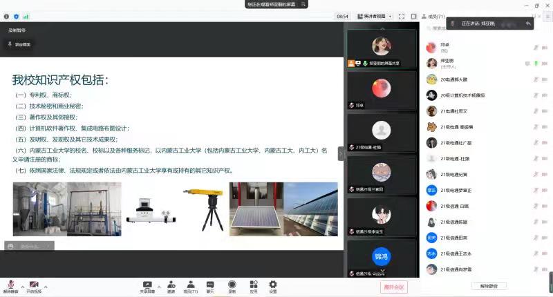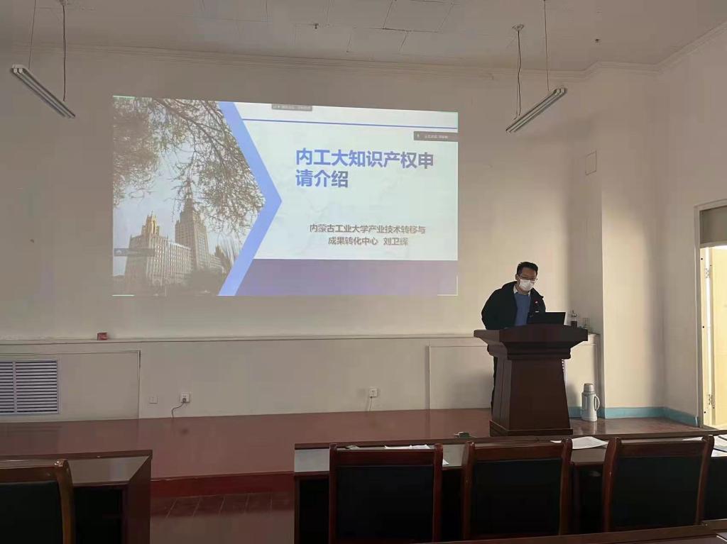 2021年12月2日下午,我院邀請產(chǎn)業(yè)技術轉(zhuǎn)移與成果轉(zhuǎn)化中心的劉衛(wèi)輝老師為學院全體研究生做了“內(nèi)蒙古工業(yè)大學知識產(chǎn)權申請”的專題講座。