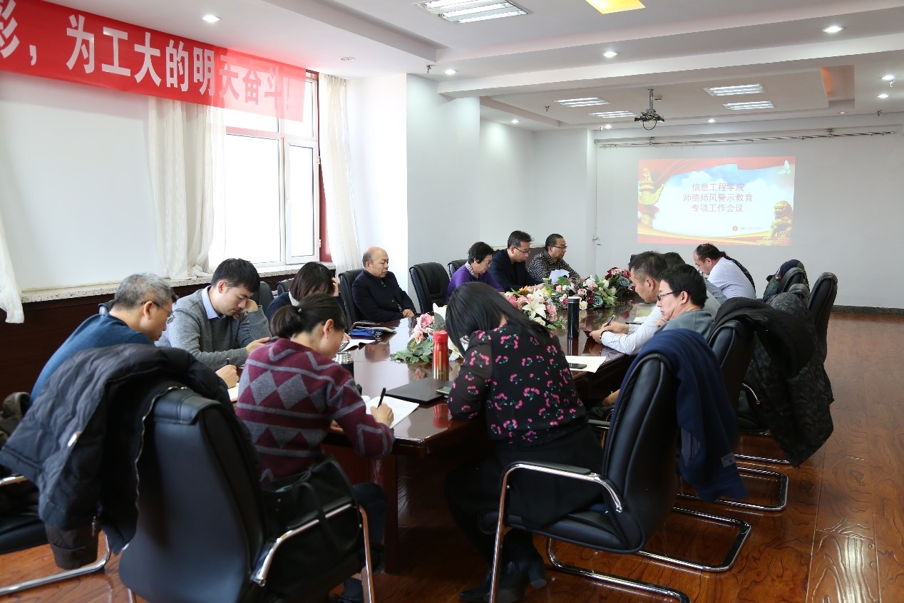 2021年11月25日下午,信息工程學院在電力大樓0918會議室召開師德師風警示教育專項工作會議,學院黨委書記王彩玲、院長李春明、副院長王金彪、副院長韓建峰、各系主任、各支部書記、各行政部門科長參加會議。