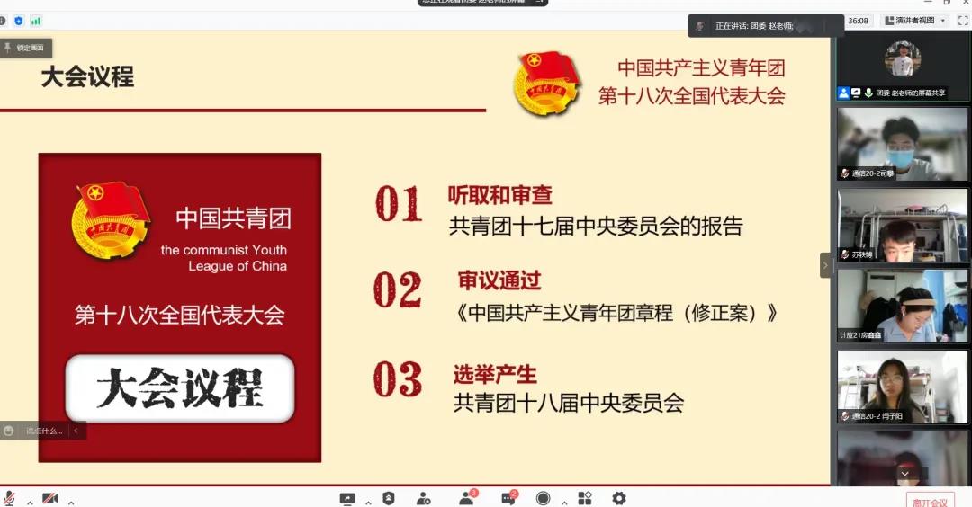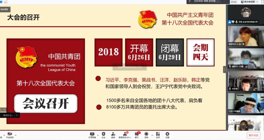 團課以團的十八大為主線,采取線上集中授課、課程討論、筆記、線下自學和小組討論的形式,組織學員認真學習團的十八大精神、團的各項規章制度等內容,增強學員們作為一名共青團員的光榮感和責任感。