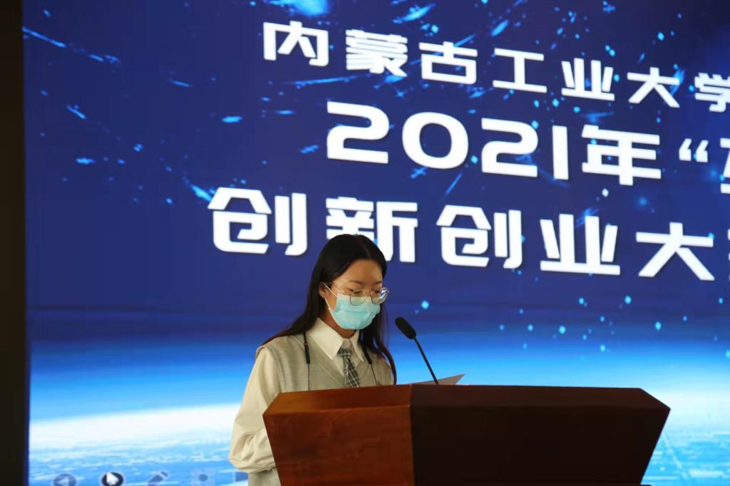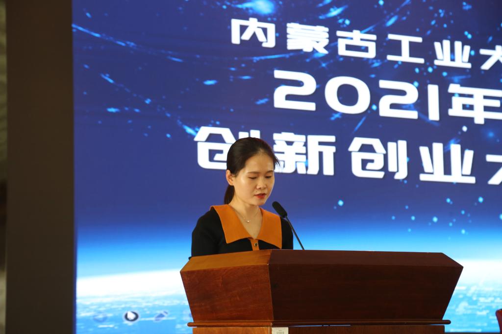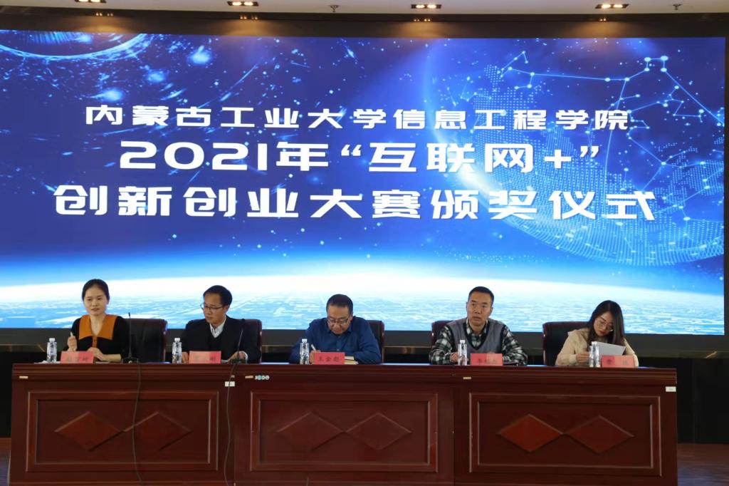 本次大賽共評選出一等獎4項、二等獎6項、三等獎10項。趙智琦老師做信息工程學院2021年“互聯網+”大學生創新創業大賽總結報告及2022年“互聯網+”大學生創新創業大賽部署。蔡永剛老師宣布2021年“互聯網+”大學生創新創業大賽院級選拔賽獲獎名單。到場領導、老師為獲獎同學頒發了獎狀和獎品。頒獎儀式后,本次大賽一等獎獲得者,電子18-2班杜美玉同學為同學們做了經驗交流。