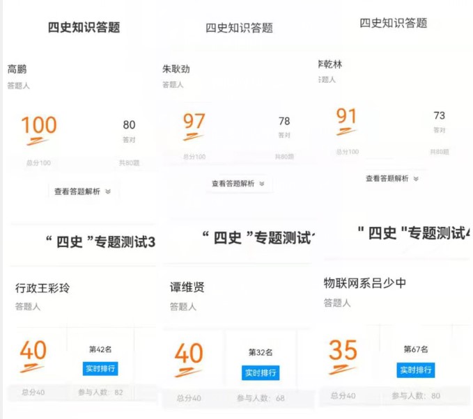 本次活動我院在職教師及各學生黨支部黨員、發展對象、入黨積極分子共計356人參與其中,采用網上答題的方法,通過以測驗學、以學促行,充分調動了我院師生學習“四史”的主動性,切實將學習過程中的感悟與經驗運用到日常的工作中,不斷從“四史”學習教育中汲取信仰之力、發展之力。