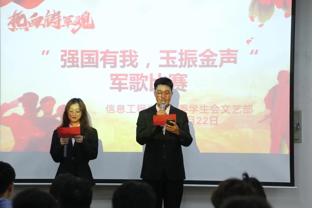 2021年10月22日晚,信息工程學(xué)院“強(qiáng)國(guó)有我,玉振金聲”主題軍歌比賽在b輔201成功舉辦。本次比賽歷時(shí)約一個(gè)半小時(shí),學(xué)院大一新生積極參加了本次活動(dòng)。