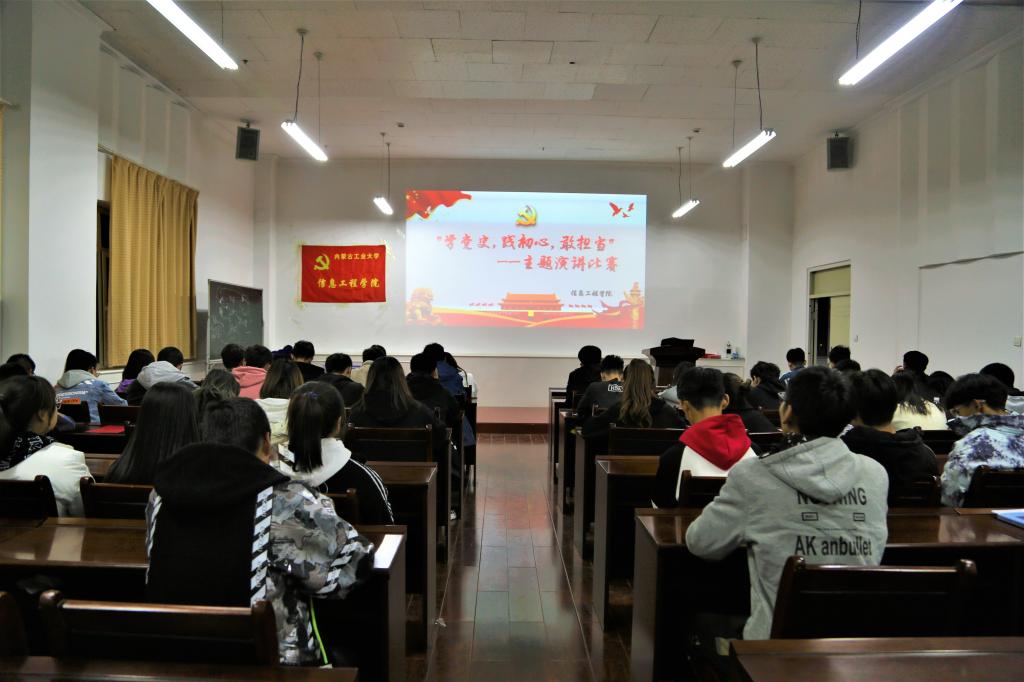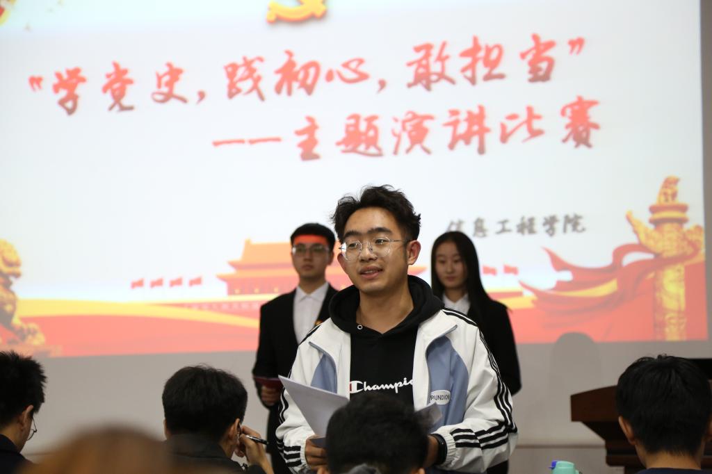 2021年10月19日,在“落霞與孤鶩齊飛,秋水共長天一色”秋日里,信息工程學院學生黨支部舉辦了以“學黨史,踐初心,敢擔當”主題演講比賽。