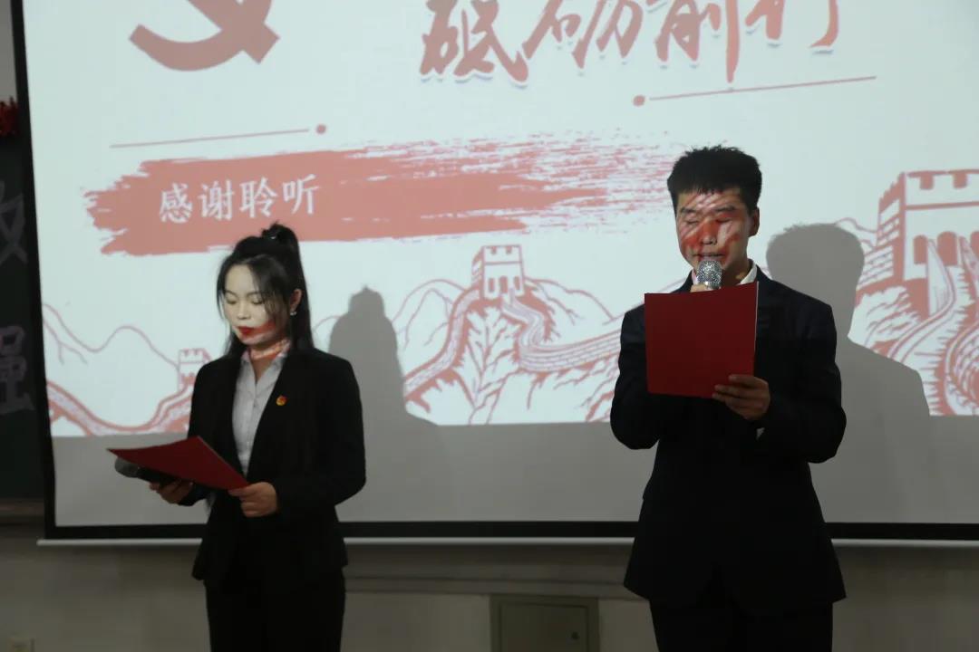 活動第二項,模范班級計算機20-2團支部開展以“請黨放心 強國有我”為主題的團日活動。一首《中國心》打開團日活動的大門,“我的祖先早已把我的一切烙上中國印”,生于華夏,是我們每個人的驕傲,我們都有一顆中國心。