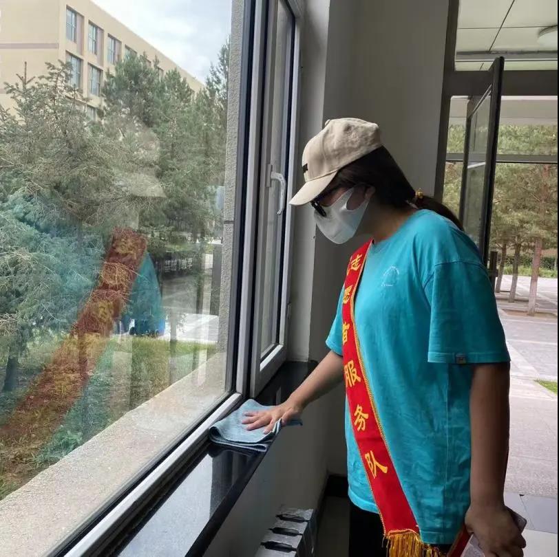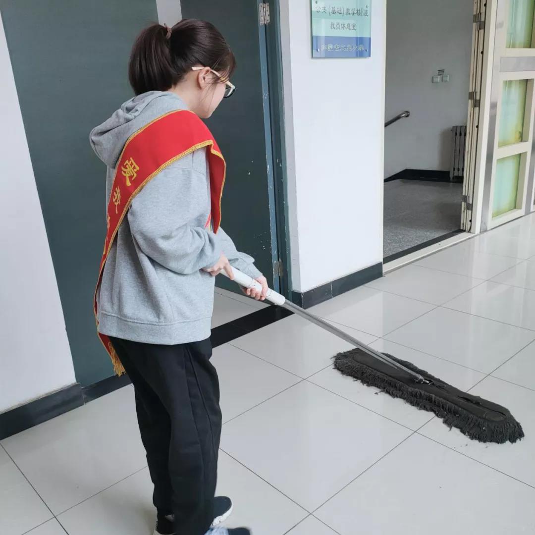 教學樓內,志愿者們積極幫助樓內的保潔阿姨們清掃教室衛生,他們秉承著無私奉獻,不求回報的志愿者精神,拿著墩布將教室里每一個角落打掃的干干凈凈,用抹布將教室內的桌子擦的干干凈凈,教室樓內的每個角落,在志愿者們的付出下變得一塵不染。