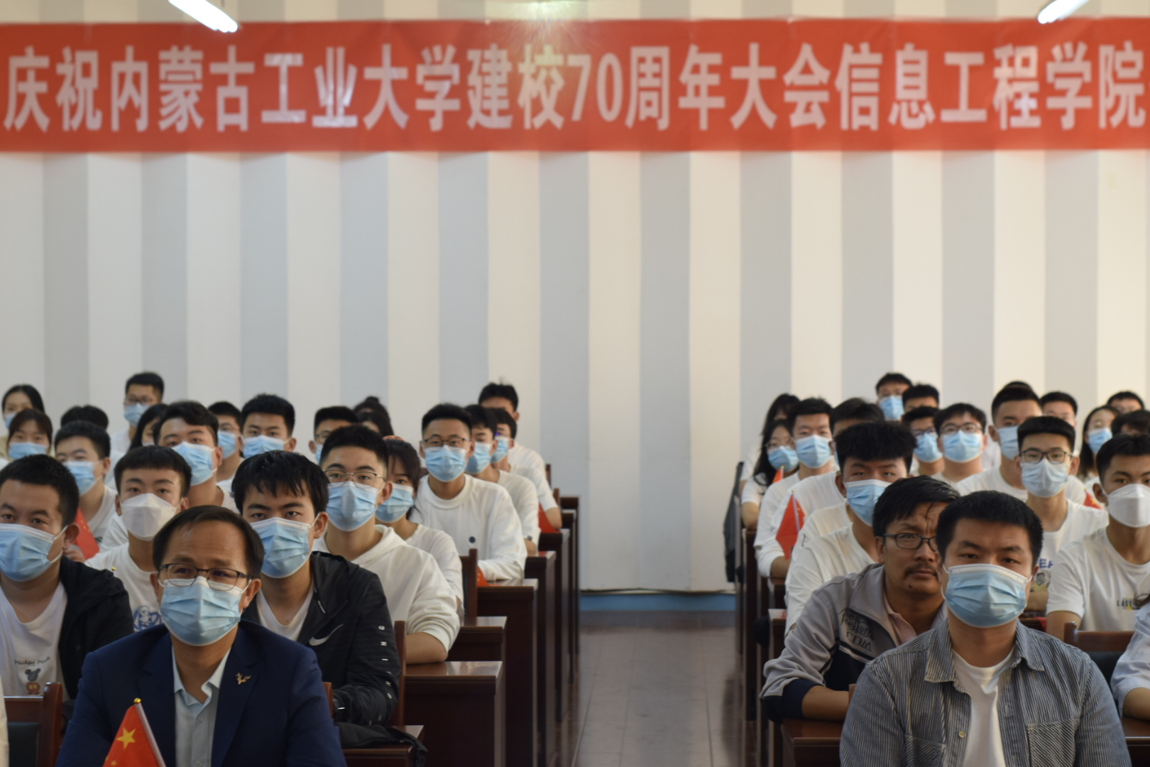 9月16日上午10時,內蒙古工業大學建校七十周年慶祝大會在新城校區卓越體育館隆重舉行。我院組織師生代表100余人在學院分會場電力大樓十樓西配會議室集中觀看了大會實況的現場直播。