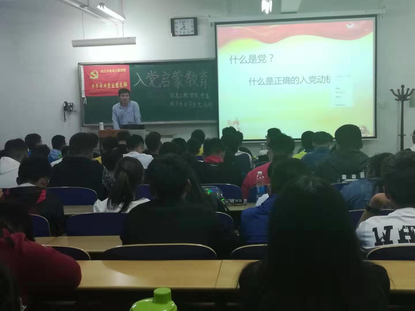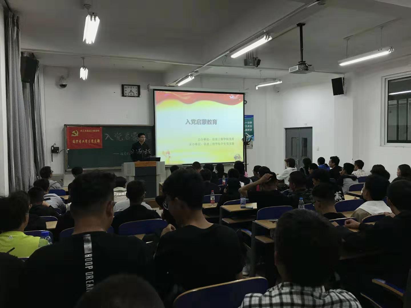 2019年9月25日通信專業學生黨支部、 電子專業學生黨支部、計算機專業學生黨支部分別在教A102、教A105、教A104舉行新生入黨啟蒙教育大會,出席會議的有三位學生黨支部書記、支委會成員及19級全體新生。