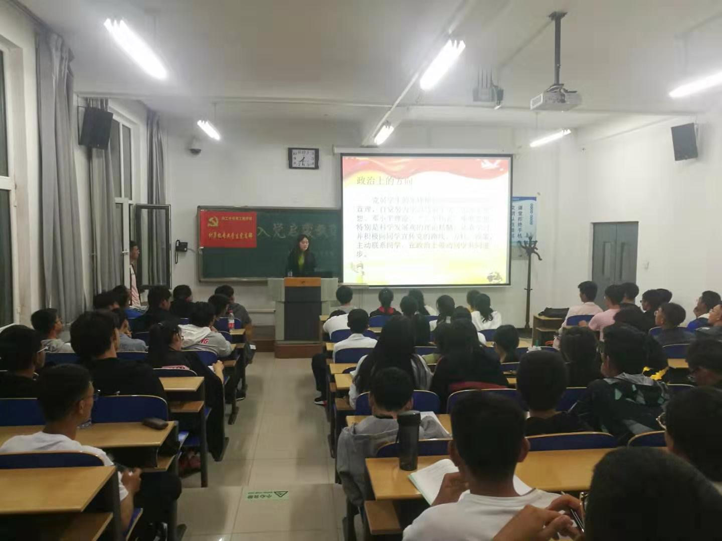 在會上,由黨支部書記對2019級新生闡述了黨的性質、宗旨、行動指南及黨的基本理論知識,強調同學們要端正入黨動機并明確了入黨動機,要求同學們樹立為國家和人民服務的宗旨,緊接著向大家介紹了入黨流程及入黨申請書書寫格式。