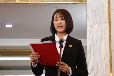 院學生會主席,電子17-1班董國鈺,電子19-1班武鏹卓分別作為在校生代表、新生代表發言。