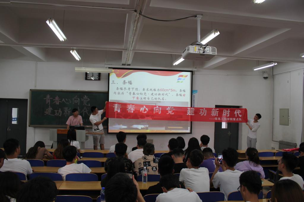 啟動(dòng)儀式中,電子17-1班董國(guó)鈺同學(xué)、計(jì)算機(jī)17-1班劉鵬同學(xué)分別宣讀《信息工程學(xué)院2019年大學(xué)生志愿者暑期“三下鄉(xiāng)”社會(huì)實(shí)踐活動(dòng)實(shí)施方案》和《信息工程學(xué)院2019年大學(xué)生志愿者暑期“三下鄉(xiāng)”社會(huì)實(shí)踐活動(dòng)應(yīng)急預(yù)案》。安全一直是我們強(qiáng)調(diào)的重點(diǎn),每一位同學(xué)心中應(yīng)警鐘長(zhǎng)鳴。隨后,由2018年暑期社會(huì)實(shí)踐優(yōu)秀隊(duì)長(zhǎng)、優(yōu)秀通訊員為到場(chǎng)的同學(xué),特別是大一的同學(xué)強(qiáng)調(diào)隊(duì)長(zhǎng)和通訊員的職能和責(zé)任。大會(huì)也對(duì)三下鄉(xiāng)線上反饋相關(guān)工作、三下鄉(xiāng)隊(duì)旗、隊(duì)標(biāo)、橫幅等規(guī)格要求作出詳細(xì)闡述。最后,團(tuán)委書記趙智琦老師對(duì)本次暑期“三下鄉(xiāng)”社會(huì)實(shí)踐活動(dòng)提出要求。第一,各團(tuán)隊(duì)必須把安全放在首位,按照學(xué)院的要求匯報(bào)成員安全情況。第二,各團(tuán)隊(duì)要按照要求開展各項(xiàng)工作和提交材料。第三,各團(tuán)隊(duì)?wèi)?yīng)以為實(shí)踐地做貢獻(xiàn)為出發(fā)點(diǎn),充分利用好三下鄉(xiāng)平臺(tái),鍛煉自己的實(shí)踐能力。第四,要做好宣傳工作,向社會(huì)展示最好的精神風(fēng)貌。