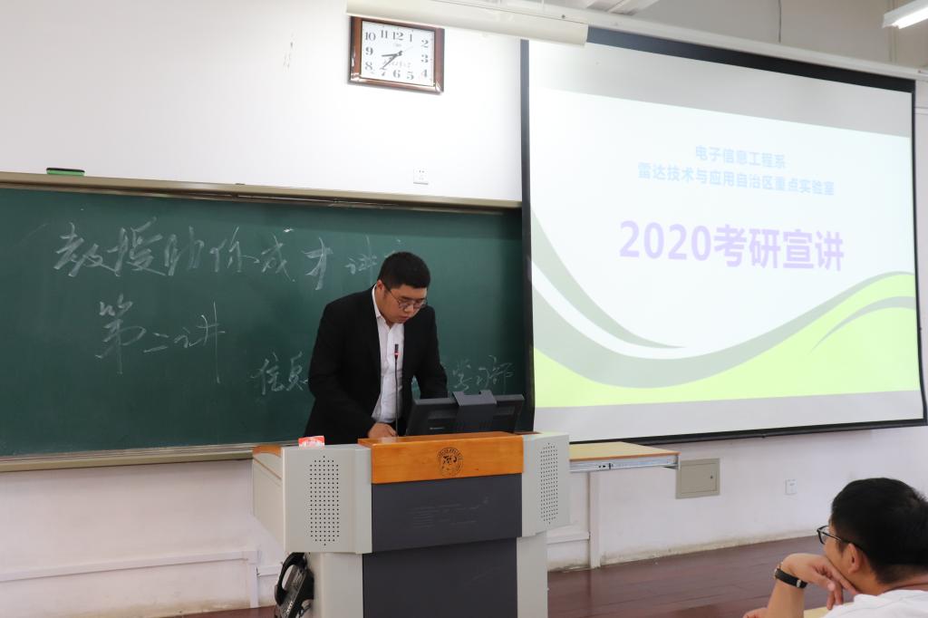 隨后,由徐偉教授代表雷達技術與應用自治區重點實驗室進行考研宣講,徐老師介紹了雷達重點實驗室的科研開展情況、研究生招生、培養的相關政策,并分析了學生可能陷入的考研誤區。