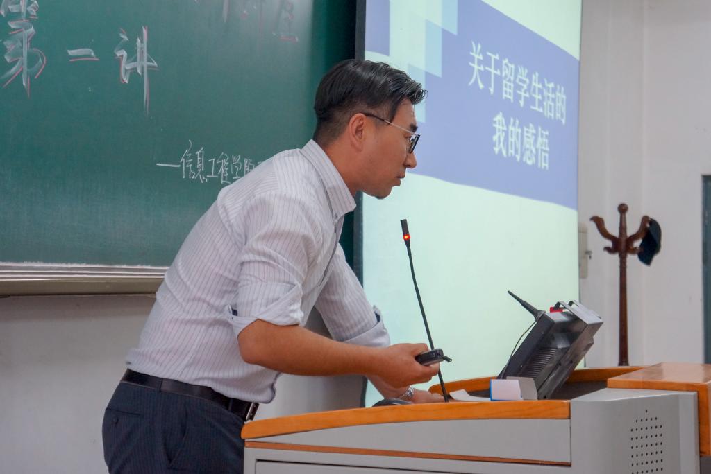 講座中,石寶教授用幽默風(fēng)趣的語言為同學(xué)們講述了他于日本名古屋市立大學(xué)留學(xué)期間的逐夢(mèng)歲月,并就自己對(duì)于專業(yè)知識(shí)的學(xué)習(xí)方法與在場(chǎng)同學(xué)進(jìn)行了分享。他鼓勵(lì)同學(xué)們今后要做一個(gè)不僅會(huì)讀書,會(huì)學(xué)習(xí),還要會(huì)思考,做敢于創(chuàng)新的有理想的科研人才。