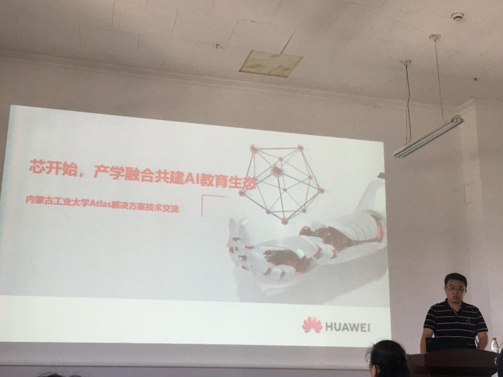 5月22日下午,“芯開始,產學融合共建AI教育生態”專題講座在內蒙古工業大學金川校區電力大樓西側十樓報告廳舉行。華為Atlas AI教育行業總監郝志宏研究員為本次講座的主講嘉賓,相關學科的導師及研究生聆聽了本次講座。