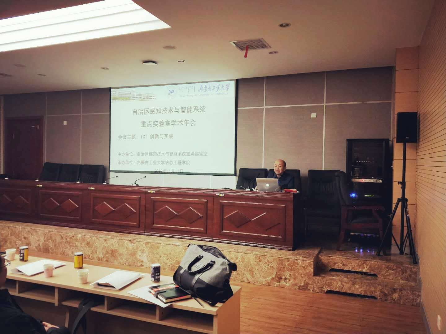 會議在呂曉琪教授和李春明教授的致詞中開始,首先聽取了實驗室主任房建東教授作的“重點實驗室2018年度工作總結”,簡要回顧了實驗室一年來的工作進展,隨后四位專家主題報告。內蒙古大學博士生導師、重點實驗室學術委員會主任委員劉永信教授作題為“信息融合技術研究進展”報告,劉教授結合近年來開展的科研項目案例,形象闡述數據融合目的,說明數據融合技術關鍵與技術難點,介紹多傳感數據融合的最新科研進展。劉教授詳細闡述了傳感器直接數據融合、特征向量融合及決策級融合三種常用方法,多目標跟蹤數據關聯、狀態估計、身份估計、圖像融合及圖像與空間數據配準等常用的融合算法,以具體的實例形象的講解JDL模型的應用。劉教授在報告中還提到數據融合的最新技術,將計算機進程和物理進程構成統一體,集計算、通信與控制于一體的下一代智能系統。內蒙古交通管理局王葆元研究員作題為“以數據思維謀劃智慧交通研究”報告,王研究員從城市道路的實際問題出發,形象展示數據與車輛密度控制之間的關系,引出物聯網大數據融合應用技術在智慧城市建設中發揮的作用,強調知識跨界應用的意義。內蒙古GPS網管中心主任、重點實驗室學術委員會主任委員張日升高級工程師作題為“產學研協同創新與ICT人才培養”報告,張總的報告從一個小視頻開始,他結合自己多年的研發經驗,分析說明創新的第一要素是樹立創新思維,鼓勵研究生真正接觸社會,在生活中學會觀察,著重闡述研究生科研中如何樹立創新思維、產生創新思路,形成解決實際問題辦法。張總還深入探討產學研協同創新模式和途徑,明確指出ICT企業對人才的需求和要求,為重點實驗室在產學研用中形成創新思路、解決社會、企業重大科技需求,凝練科研特色,指明方向。自治區感知技術與智能系統重點實驗室紀松波教授介紹了課題組研發的ICT最新科研成果—基于物聯網MQTT協議的通信基站動力與環境監控系統,紀教授以自主創新科研成果的研發過程為案例,詳細并深入淺出地闡述如何運用專業理論知識解決實際問題、解決工程中的技術問題,如何有效提高系統的可靠性、穩定性和性價比。