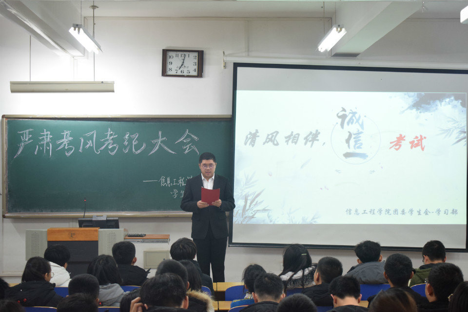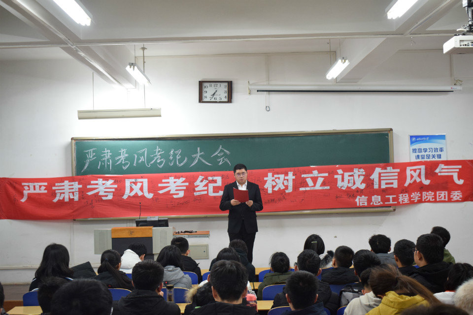 為加強學風建設,營造文明、誠信考試的良好氛圍,我院團委于12月18日晚舉辦“嚴肅考風考紀 弘揚誠信之風”主題活動,學院各年級學生代表近100余人參加。