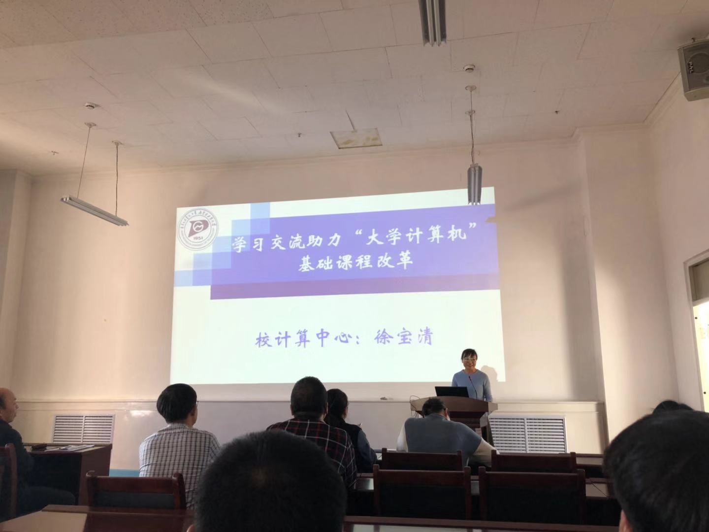 徐寶清老師,從傳承先輩教學理念、學習同行經驗、研究教學培養方案、建設大學計算機混合課程四個方面,就大學計算機基礎課程改革問題進行了交流發言。