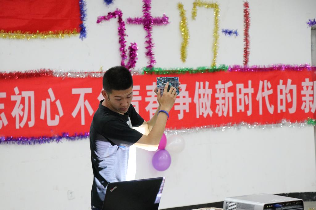 本次團日活動的主要內容有:我的軍營我的家,由班級的退伍軍人講述了他的軍營生活,讓同學們感受到了我國軍人的鋼鐵紀律,以及勇與擔當,不辱使命的精神追求;演繹了由班級自創的話劇《挺立在孤獨、失敗與屈辱的廢墟上》,一個小小的故事,深深的打動了觀眾;走在科技最前端,單片機的講述,智能小車的代碼解讀,讓同學們感受到了科技的力量。一個簡單的C語言程序設計大賽,讓同學們知道了自己專業的不足;軍旅題材小品《訓練場上》,與退伍軍人的講訴前后呼應。最后,同學們一起宣誓,并在條幅上簽下了自己的姓名,讓同學們銘記了今天的誓言。