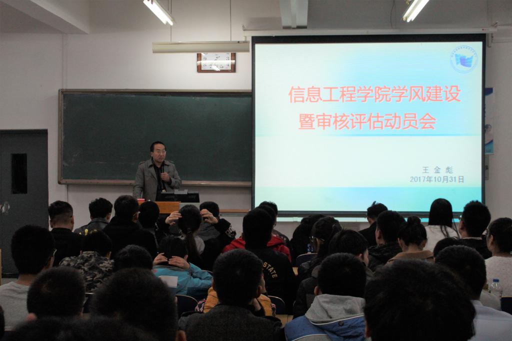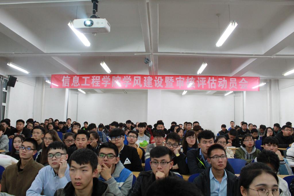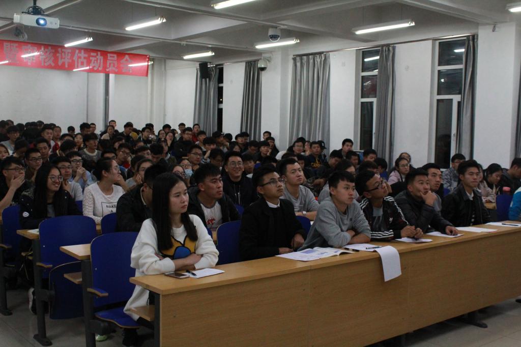 為做好本科教學(xué)工作審核評估學(xué)風(fēng)建設(shè)專項迎評準(zhǔn)備工作,增強(qiáng)學(xué)生參與評估工作的積極性和主動性,動員廣大學(xué)生以更新的精神風(fēng)貌、更高的學(xué)習(xí)熱情、更足的工作干勁、更強(qiáng)的使命感和責(zé)任感投入到迎評工作中,10月31日,信息學(xué)院在B輔101召開學(xué)風(fēng)建設(shè)暨審核評估動員會。學(xué)院團(tuán)委學(xué)生會主要干部成員、全體學(xué)生黨員以及各班班長、團(tuán)支書、學(xué)習(xí)委員240余人參加動員會。