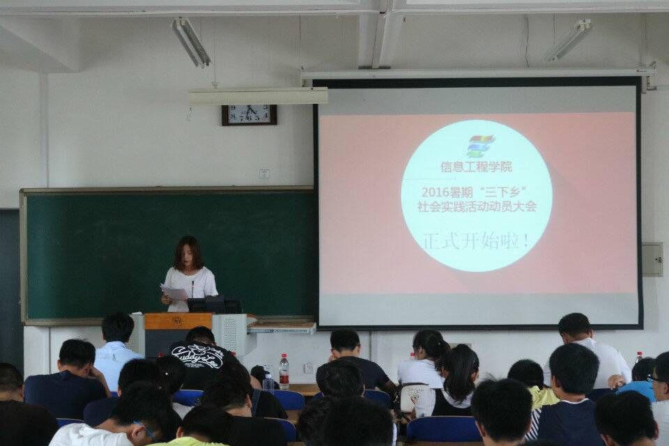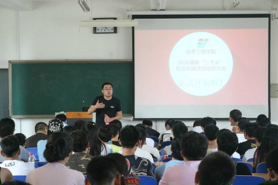 會上,軟件14-2班宋旭、通信14-1班劉譽分別宣讀《信息工程學院2016年暑期三下鄉部署方案》和《信息工程學院2016年暑期社會實踐應急預案》,介紹學院2016年暑期社會實踐工作基本情況。2015年暑假社會實踐優秀隊長侯慧敏、優秀通訊員張磊分別介紹暑假社會實踐相關工作經驗,軟件14-2班劉永寧就今年暑期社會實踐新媒體線上實時反饋工作進行指導。通信14-1班劉玉波對各實踐隊開展活動的各項事宜進行部署。