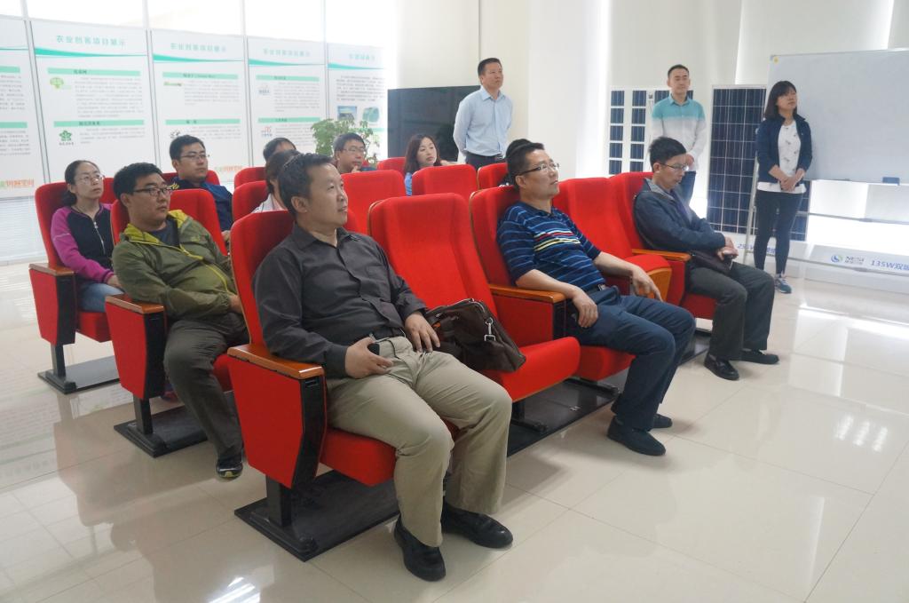 昌盛日電內蒙古呼和浩特新城區20MW光伏現代農業園區,作為呼和浩特地區首個光伏農業綜合體項目,集經濟作物種植、農副產品生產銷售、休閑觀光農業開發、農業創客創業為一體,具備“特色高效農業”與“光伏新能源發電”的綜合優勢。期間,雙方就光伏技術進行了深入交流,老師們對昌盛日電首創的光伏農業模式給予高度評價。