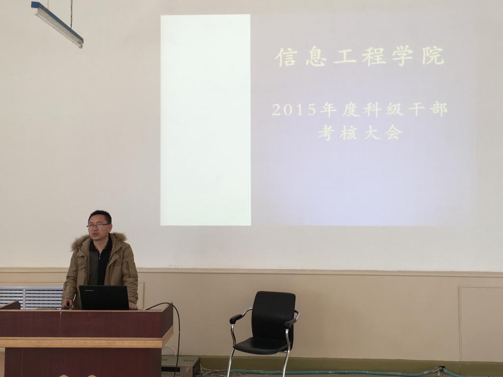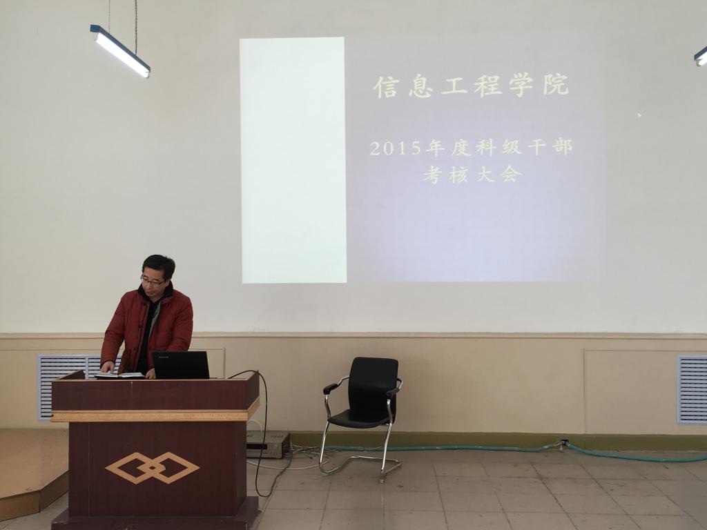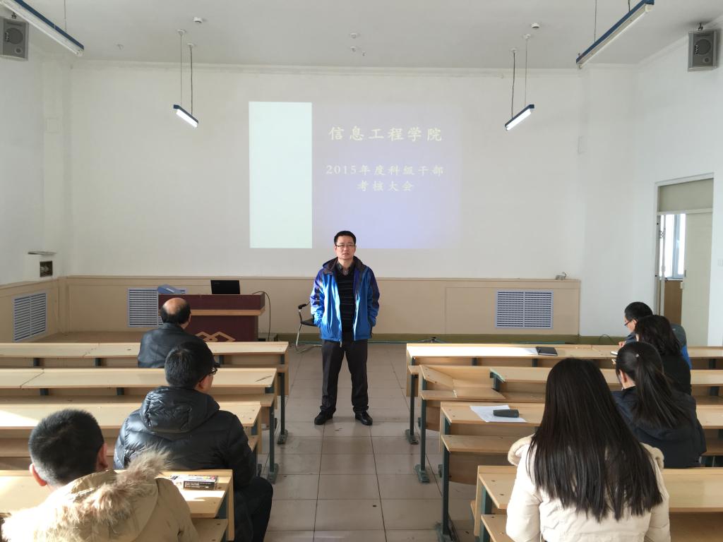 為進(jìn)一步提高學(xué)院中層干部的工作能力和效率,檢查和了解學(xué)院科級干部年度履行崗位職責(zé)情況,不斷加強(qiáng)干部隊伍作風(fēng)建設(shè),提高干部的整體素質(zhì),2015年12月25日上午,信息工程學(xué)院2015年科級干部述職考核會議在電力大樓十樓會議室舉行。學(xué)院科級干部考核領(lǐng)導(dǎo)小組成員、全體科級干部參加會議。會議由院黨委書記、院科級干部考核領(lǐng)導(dǎo)小組組長彭建兵主持。