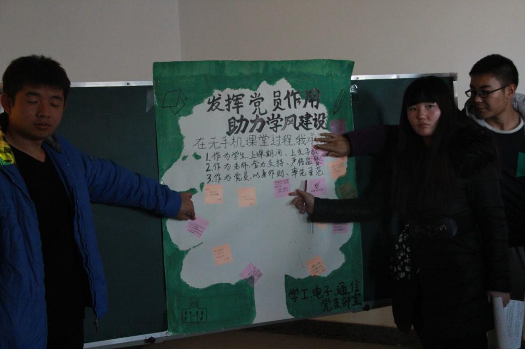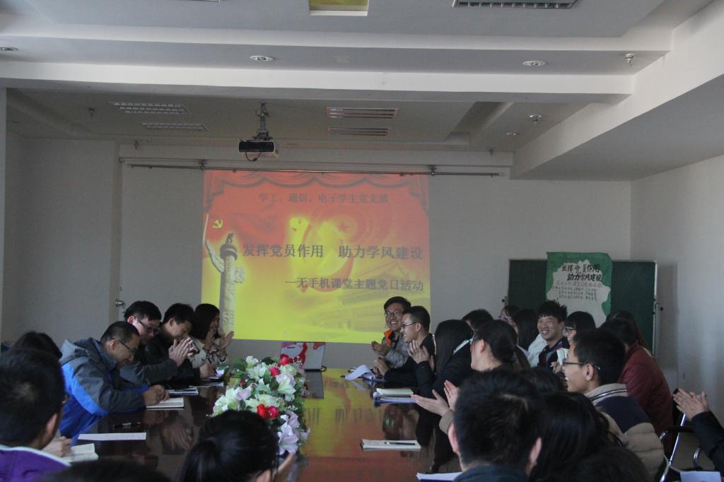 12月10日下午,學工黨支部、通信專業學生黨支部、電子專業學生黨支部召開以“發揮黨員作用,助力學風建設”為主題的特色黨日活動。本次黨日活動以“無手機課堂”為主要議題,3名教師黨員、25名學生黨員、14名入黨積極分子及2名學生代表參加本次活動。