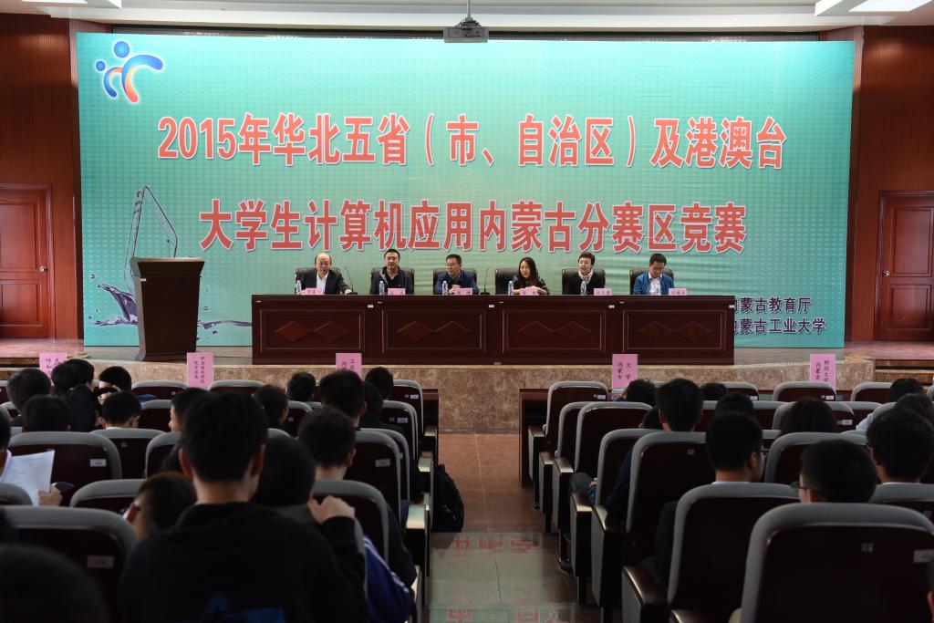 ,2015年華北五省(市、自治區)大學生計算機應用大賽內蒙古賽區比賽再次在內蒙古工業大學舉行。大賽組委會副主任、內蒙古工業大學副校長峻峰,自治區教育廳高教處徐劫,內蒙古工業大學教務處、團委和信息工程學院等相關部門負責人出席開幕式。