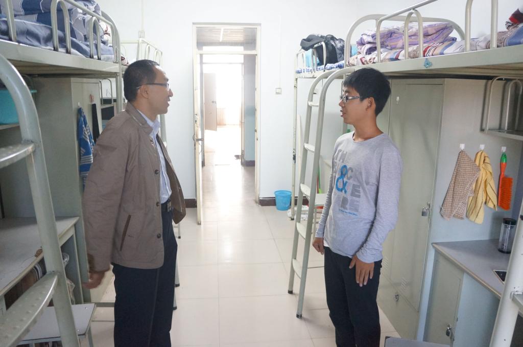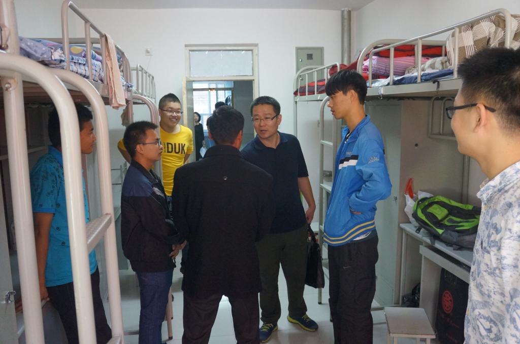 為了進一步做好新生入學教育工作,加快新生適應大學生活,9月14日下午,我院黨委書記彭建兵,副書記副院長王金彪、學生輔導員和部分新生班主任一同到新生宿舍走訪,了解他們存在的實際困難,幫助他們一一解決。同時,走訪老師叮囑同學們要注意人身財產(chǎn)安全,并通過自身的努力盡快適應大學生活。