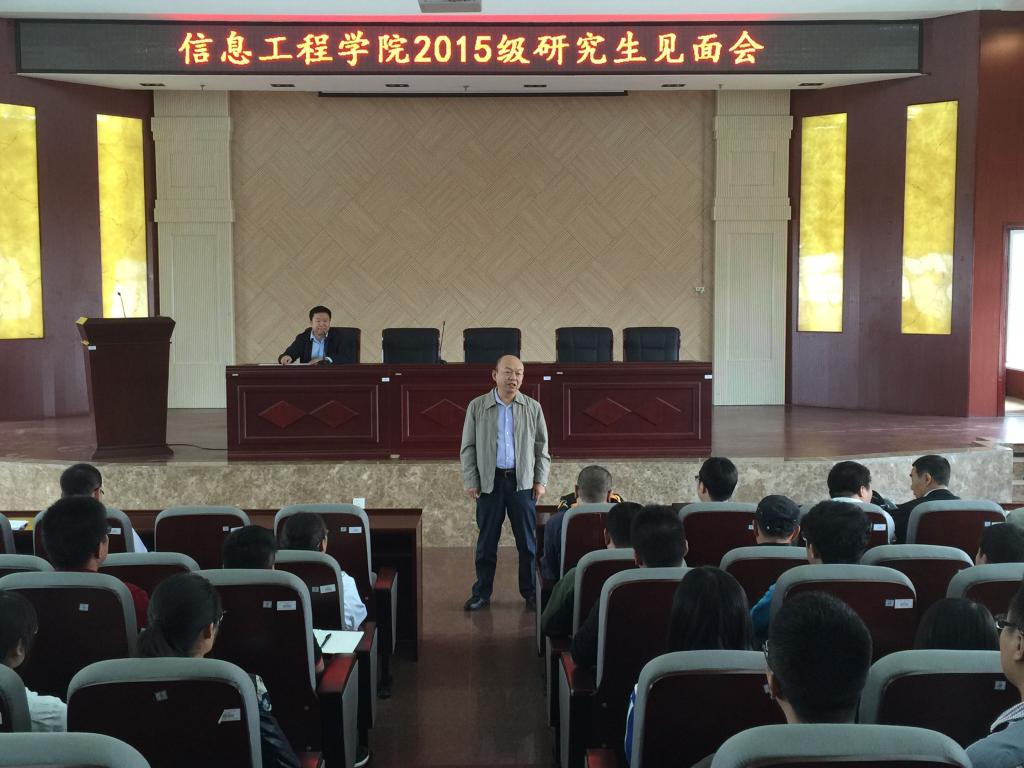 9月11日下午,我院2015級研究生迎新見面會在金川校區電力大樓報告廳舉行。學院領導、各學科點負責人和導師、研究生工作負責人及2015級研究生等參加了會議。會議由主管學院研究生工作的副院長孟克其勞主持。