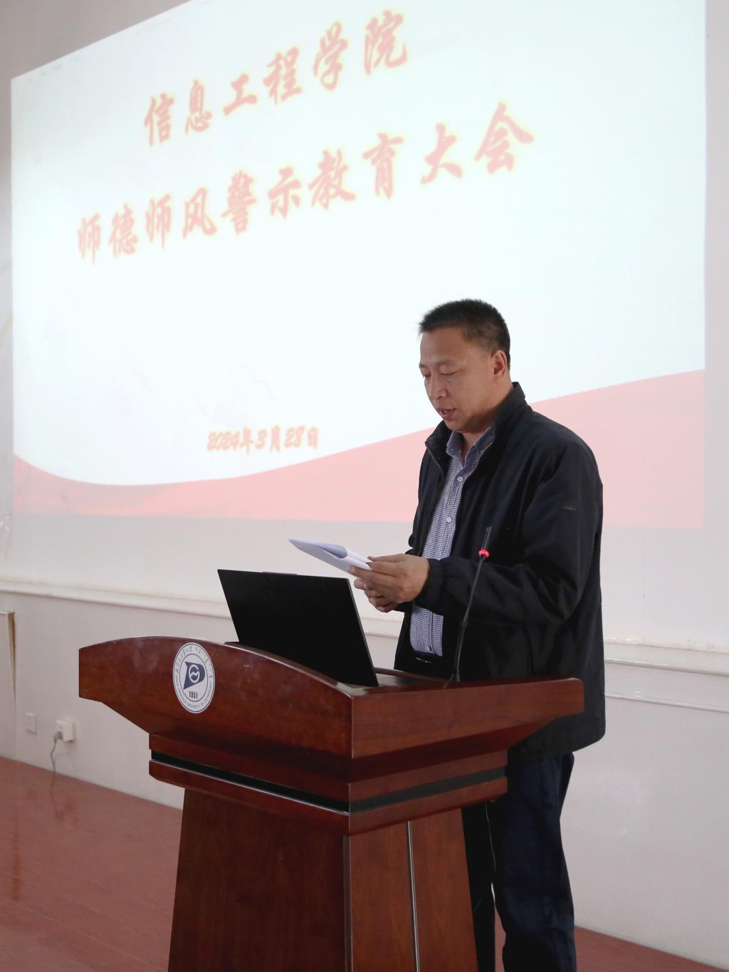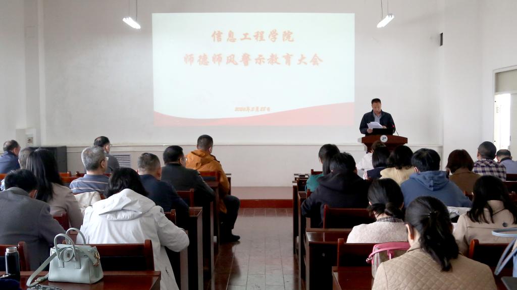 學院黨委書記劉建國傳達學校師德師風警示教育工作會議精神,通報2023年教育部公開曝光的違反教師職業(yè)行為十項準則典型案例和2023年我校處理的師德師風失范典型案例,強調(diào)全體教師應嚴格遵守新時代高校教師職業(yè)行為十項準則,堅持“自重、自省、自警、自律”,規(guī)范自身一言一行,營造講師德、樹師德的良好氛圍。