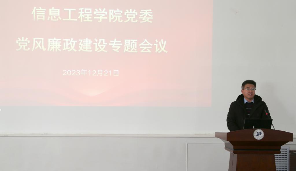 12月21日,信息工程學院黨委召開黨風廉政建設專題會議,學院黨委書記烏迪主持會議,全院教師參加會議。