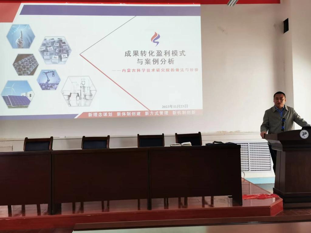 11月23日下午,我院邀請(qǐng)內(nèi)蒙古科學(xué)技術(shù)研究院成果轉(zhuǎn)化中心主任、正高級(jí)工程師王強(qiáng)為學(xué)院教師作了“成果轉(zhuǎn)化盈利模式與案例分析”的學(xué)術(shù)講座。