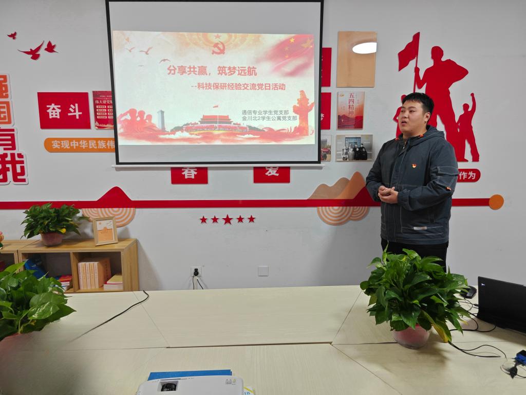 為進一步加強我院學風建設,積極發揮朋輩引領作用,10月26日晚7:00,我院通信專業學生黨支部與金川北2學生公寓黨支部聯合在金川北2學生黨建活動室舉辦了科保經驗分享主題黨日活動。40余名學生參加。
