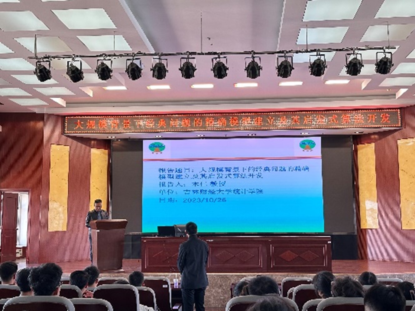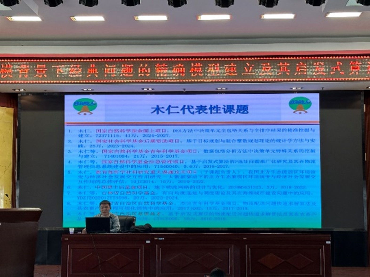 10月26日下午在電力大樓十樓報告廳,吉林財經大學的木仁教授為我們帶來了“大規模背景下經典問題的精確模型建立及其啟發式算法開發”的學術講座。講座中,木仁教授分享了大規模數據包絡分析模型的求解算法,并且通過舉例COVID-19疫情期間生活物資的科學管理分配問題等具體問題,幫助同學們深入理解了如何根據具體實例進行算法開發及模型建立。