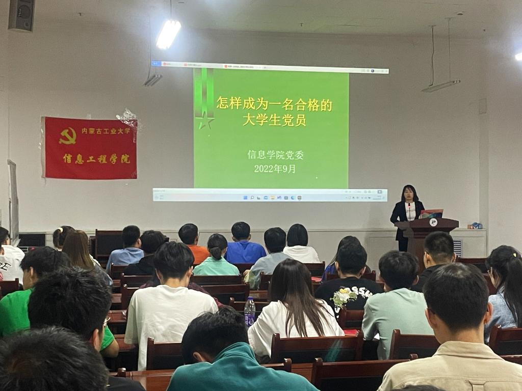 2022年9月27日至2022年12月4日,內(nèi)蒙古工業(yè)大學(xué)信息工程學(xué)院舉辦第74期黨校培訓(xùn),共有66名同學(xué)參加學(xué)習(xí)。本期培訓(xùn)主要采取線下集體授課、網(wǎng)絡(luò)集中教學(xué)、綜合實(shí)踐活動(dòng)、小組合作討論、觀看教育影片等形式,組織發(fā)展對(duì)象深入學(xué)習(xí)貫徹黨的宗旨、指導(dǎo)思想、綱領(lǐng)、政策,貫徹落實(shí)黨員先進(jìn)性的要求,加強(qiáng)對(duì)黨的基本理論、黨的光輝歷程、黨的非凡成就等方面的學(xué)習(xí)與教育。