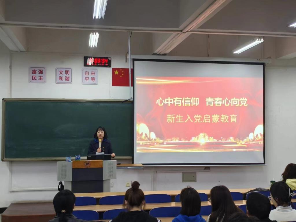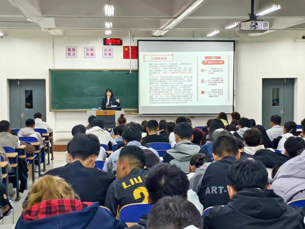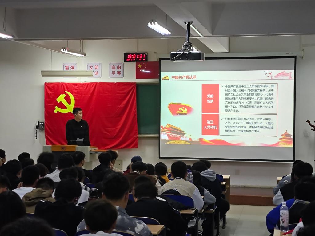 許霞老師圍繞“心中有信仰,青春心向黨”為主題,深入淺出地介紹了黨的基礎(chǔ)知識、明確申請入黨的條件、共產(chǎn)黨員的條件和標(biāo)準等。學(xué)生黨員王琦帶領(lǐng)同學(xué)們學(xué)習(xí)黨的性質(zhì)、端正入黨動機等知識,介紹了發(fā)展黨員的工作流程及入黨材料的寫作要求。鼓勵新生們從啟蒙教育開始,自覺學(xué)習(xí)黨的理論知識,增強政治覺悟,努力提高自身綜合素質(zhì),為將來成為一名合格的共產(chǎn)黨員做好準備。