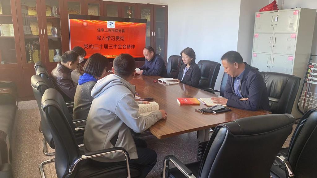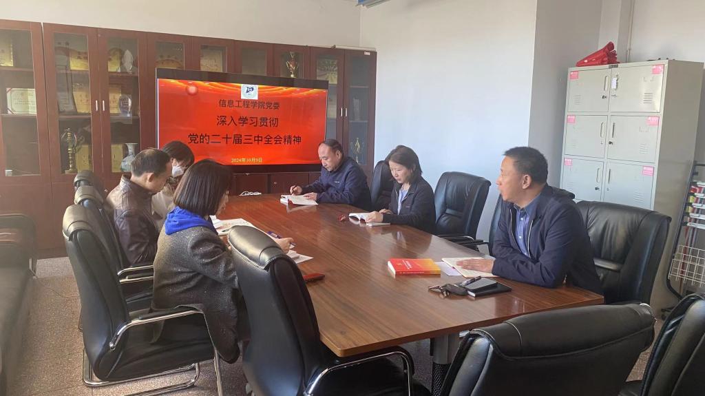 10月9日,信息工程學(xué)院黨委理論學(xué)習(xí)中心組召開深入學(xué)習(xí)貫徹黨的二十屆三中全會精神專題學(xué)習(xí)。學(xué)院黨委成員參會,學(xué)院黨委書記劉建國帶領(lǐng)學(xué)習(xí)。