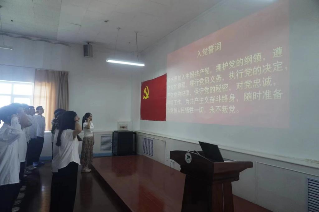 大會(huì)在新老黨員合唱中華人民共和國國歌中拉開帷幕。在大會(huì)中為新黨員舉行入黨宣誓儀式,由學(xué)院黨委委員、教師老黨員為新黨員佩戴黨員黨徽,隨后學(xué)院團(tuán)委書記趙智琦帶領(lǐng)新黨員宣誓、老黨員重溫入黨誓詞。計(jì)算機(jī)22-1班王曉鵬同志代表新黨員發(fā)表講話,表達(dá)了對黨的忠誠和為黨的事業(yè)奮斗的決心。
