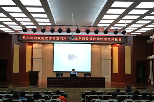 12月26日晚,我院在電力大樓10樓報告廳舉辦優秀校友事跡報告會。計算機科學與技術專業2008屆及2010屆兩位校友劉琳、安海龍為同學們做報告。學院就業辦老師及全院近200名學生參加報告會。