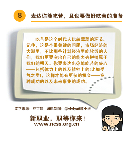 【收好,學習!八條實用的求職經驗】又到了找工作的高峰時節了。在這樣的時刻里,應屆畢業生們以及一些往屆生們都在焦頭爛額地填著簡歷以及忙著面試 。特此總結出以下經驗,以供同學們參考: