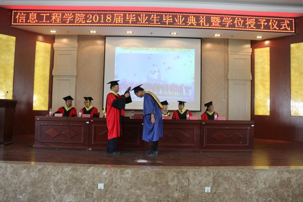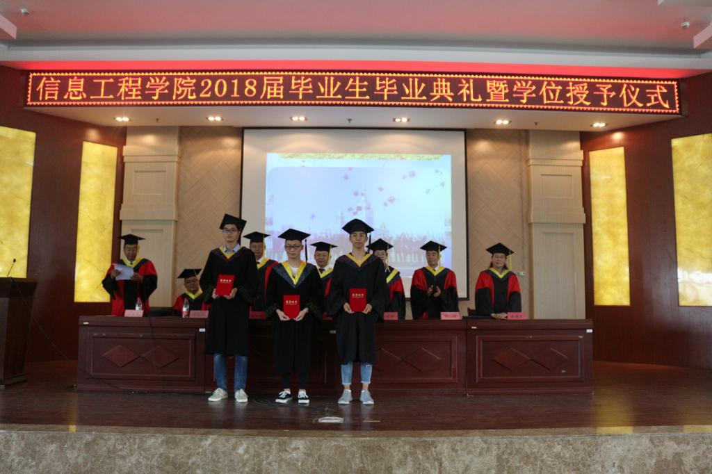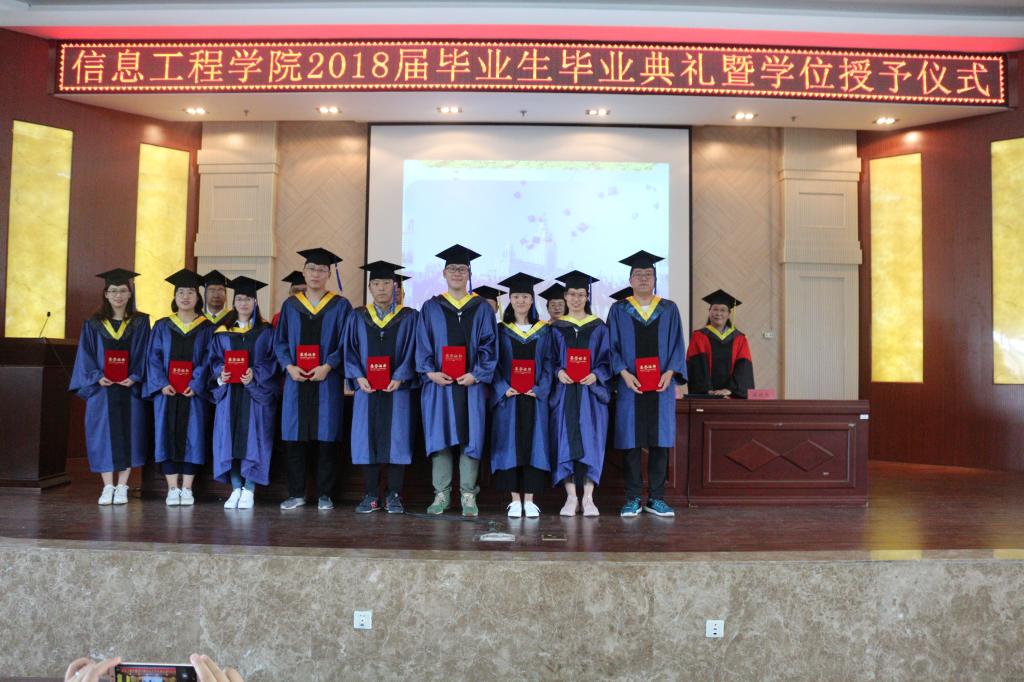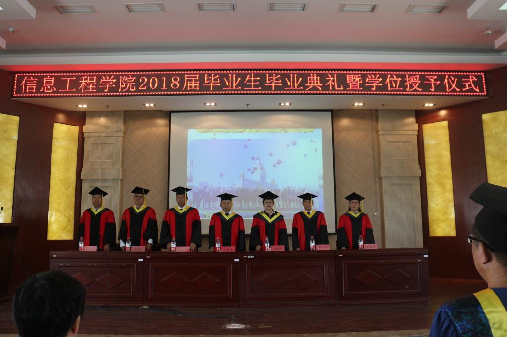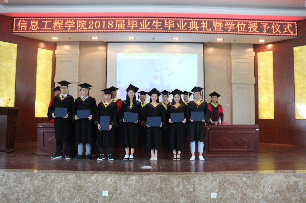 院長李春明教授發(fā)表熱情洋溢的講話,他向?qū)W業(yè)有成、即將告別母校,踏上新的人生征程的2018屆畢業(yè)生表示了最熱烈的祝賀,并送給即將走上工作崗位的2018屆畢業(yè)生忠告,首先,要腳踏實(shí)地,謹(jǐn)記母校 “博學(xué)躬行、尚志明德”的校訓(xùn)。走出校門,扎扎實(shí)實(shí)從小事做起,從大處著眼,多些行動,努力做生活的強(qiáng)者。其次,向?qū)嵺`學(xué)習(xí)、向生活學(xué)習(xí)、向同事朋友學(xué)習(xí)、向挫折學(xué)習(xí)、向書本學(xué)習(xí),唯有學(xué)習(xí)才能使我們始終擁有前進(jìn)的動力。他表示,學(xué)院不忘初心,始終把人才培養(yǎng)放在辦學(xué)的首位,努力將信息工程學(xué)院建設(shè)的更好!學(xué)院每位教師都期望同學(xué)們在未來的征途上不斷進(jìn)步、奮力拼搏,愿同學(xué)們歷盡千帆,歸來仍是少年!