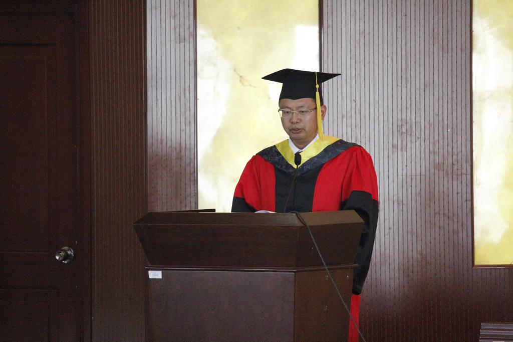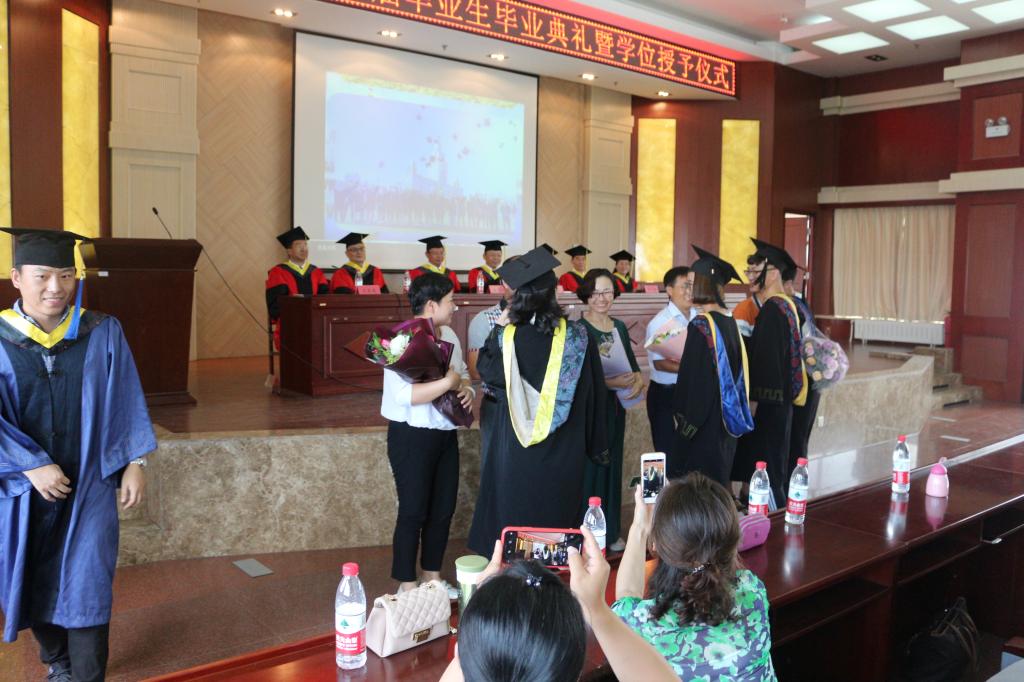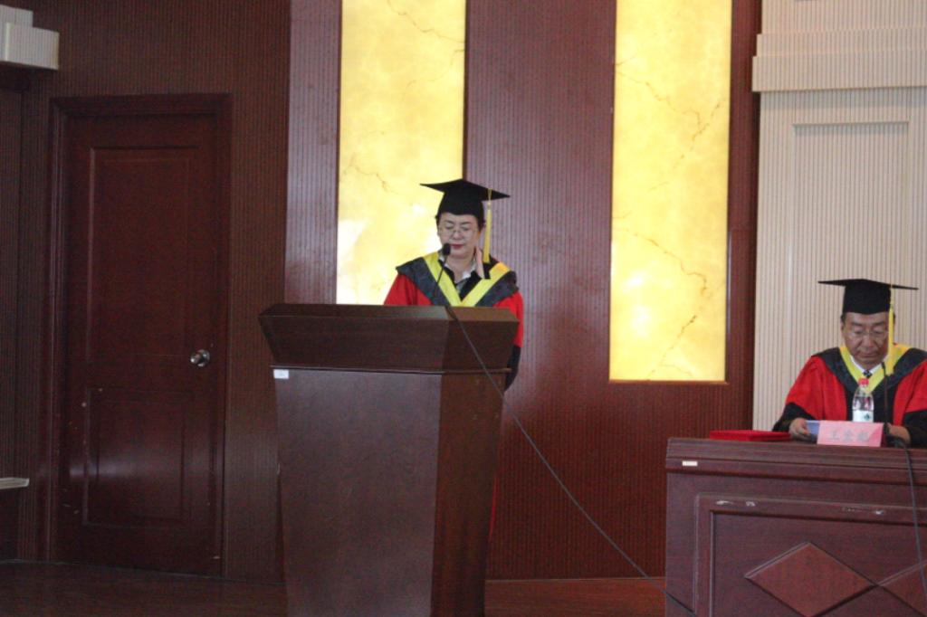 畢業(yè)典禮暨學(xué)位授予儀式在莊嚴(yán)的國歌聲中拉開序幕。副院長黃平平宣讀了獲得碩士學(xué)位畢業(yè)生名單、學(xué)士學(xué)位畢業(yè)生名單。受校長、校學(xué)位評定委員會主任委員邢永明教授的委托,學(xué)位分委員會主席、院長李春明為2018屆獲得碩士學(xué)位的畢業(yè)生授予學(xué)位,學(xué)院領(lǐng)導(dǎo)及學(xué)位分委員會成員為獲得學(xué)士學(xué)位的畢業(yè)生授予學(xué)位。