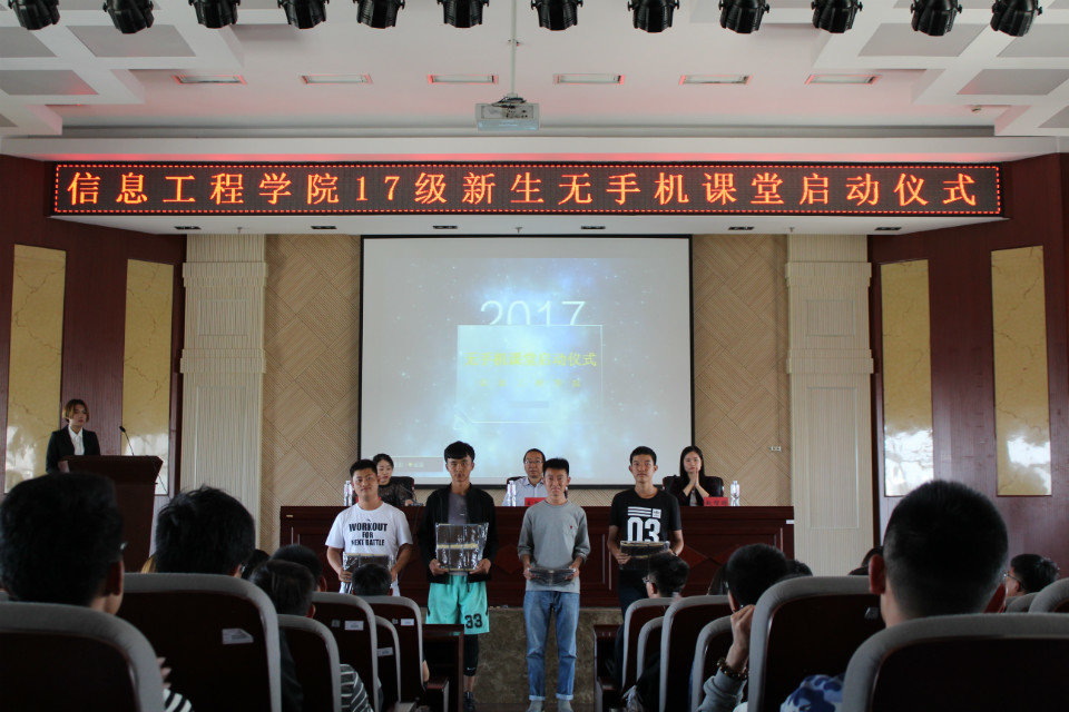 為加強學風建設,規范課堂教學秩序,提高課堂學習效率,我院于9月21日下午舉辦17級新生“無手機課堂”啟動儀式。學院黨委副書記、副院長王金彪、學工辦主任許霞、團委輔導員趙智琦,200余名新生代表參加啟動儀式。