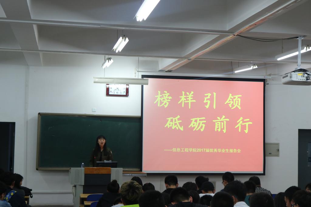 6月6日晚,我院舉辦“榜樣引領,砥礪前行”——信息工程學院優秀畢業生報告會。學院就業辦主任蔡永剛老師及大三近200名學生參加了報告會。
