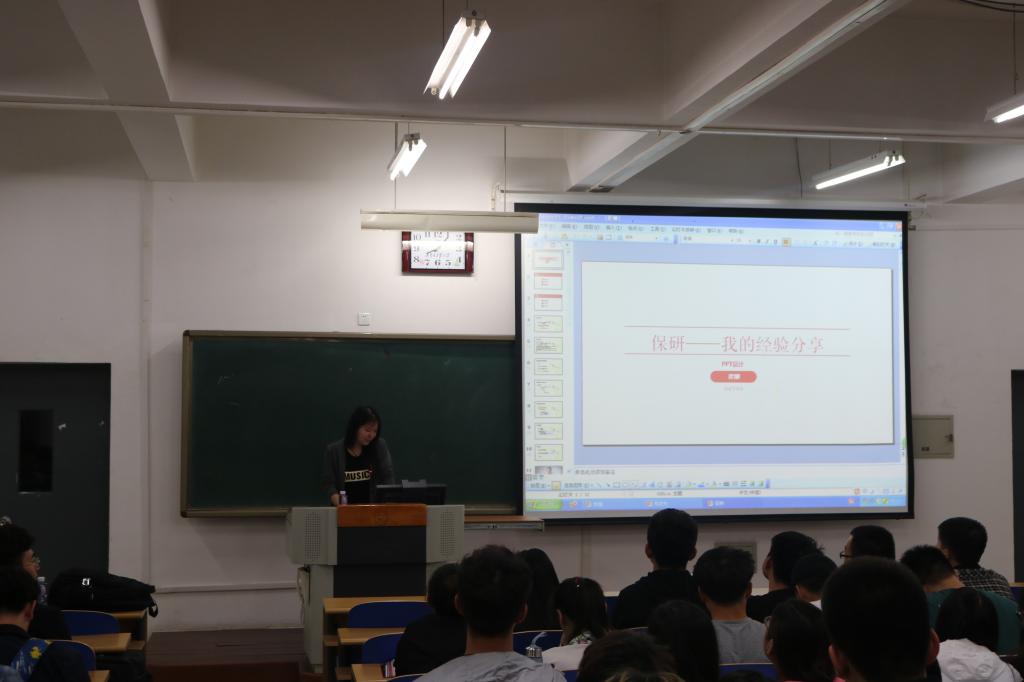會上,通信工程13-2班郭慧,軟件工程13-2班翟娜,網絡工程13班包世光及通信工程13-1班李信四位同學就考研備戰、保研選擇、公務員應考及就業、擇業經驗等四個方面為學弟學妹們講述了自己的經歷,分享了自己的經驗,并鼓勵他們大四這一年一定要端正態度,調整好心態,信心滿滿的去迎接挑戰,碰到困難一定要多爭取、多詢問、多借鑒、多付出,大膽嘗試,挑戰自我,贏得一個美好的明天。
