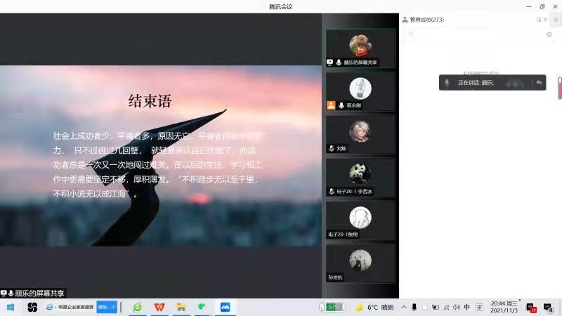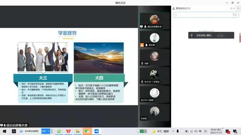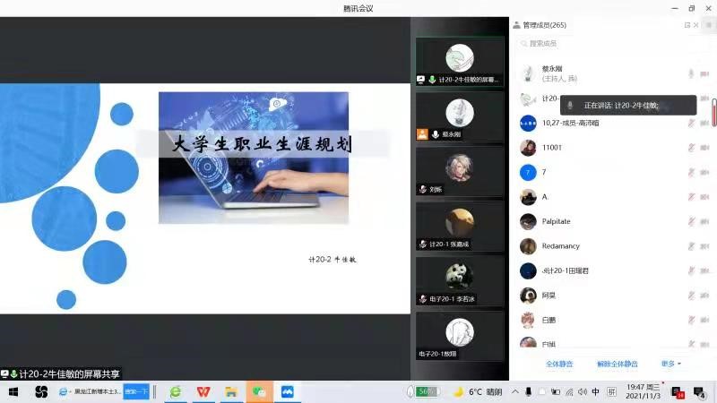 11月3日晚,我院通過騰訊會議平臺舉辦2021年大學生職業生涯發展與規劃大賽。學院團學辦公室趙智琦及蔡永剛兩位老師出席大賽并擔任評委,學院2020級近270名學生線上觀摩了比賽。